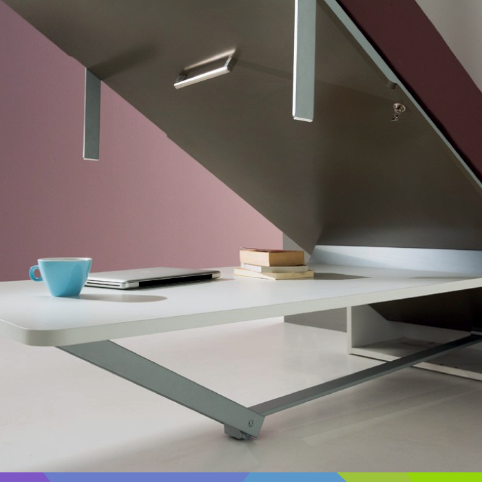 Set vsebuje mehanizem za dvig in SOFT spust postelje ter okvir z letvicami in zložljiv mehanizem za mizo.