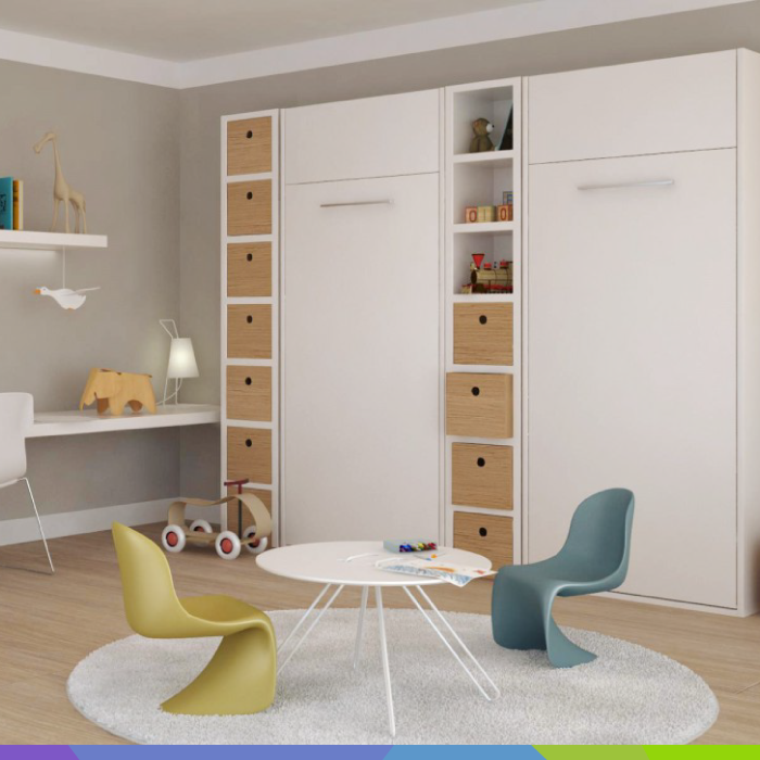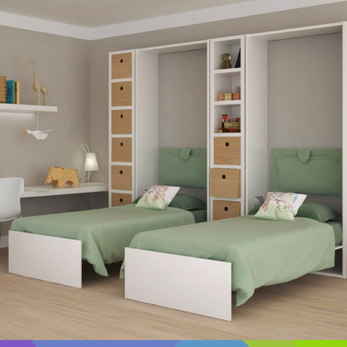 Skrita bočna postelja uporabniku zagotavlja preprosto odpiranje z enostavnim uravnoteženim potegom navzdol. Za to poskrbi napreden mehanizem za dvig in SOFT spust postelje ter okvir z letvicami. Postelja v omari je dobavljiva v single in double dimenzijah ter po meri. Single dimenzije na voljo so 920 x 2000 mm (15,5 kg) in 1220 x 2000 mm (20 kg). Zložljiva postelja v double dimenzijah pa je na voljo v velikostih 1420 x 2000 mm (25 kg), 1620 x 2000 mmm (28 kg) in 1820 x 2000 mm (30 kg).