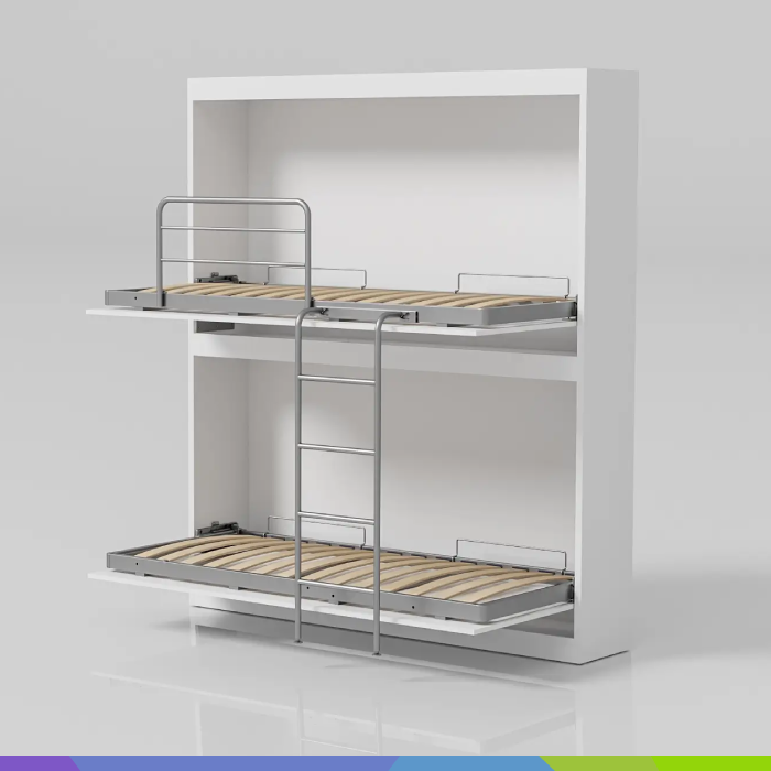 Set vsebuje okvir z letvicami ter dvojni mehanizem za SOFT spust in dvig ležišča. Izdelan iz visokokakovostnih materialov uporabniku zagotavlja maksimalno funkcionalnost ter dolgo življenjsko dobo. Zaščitna ograja poskrbi za dodatno varnost, lestev za preprost dostop, možnost nagiba zgornje vzmetnice pa za enostavno preoblačenje posteljnine. Pograd v omari je dosegljiv v single dimenzijah 80 x 190 cm (14 kg) in 90 x 200 cm (15,5 kg) ter bunked dimenzijah 80 x 190 cm (14 kg) in 90 x 200 cm (15,5 kg). Za vse, ki si želijo v domu prostor optimalno izkoristiti, pa je na voljo tudi izdelava po meri. Omara pograd Silvy svojo prilagodljivost odraža še v neodvisnem spuščanju obeh postelj ter prilagoditvi barve končne obdelave, ki dopušča, da se sklada z vsakim stilom notranjega oblikovanja.