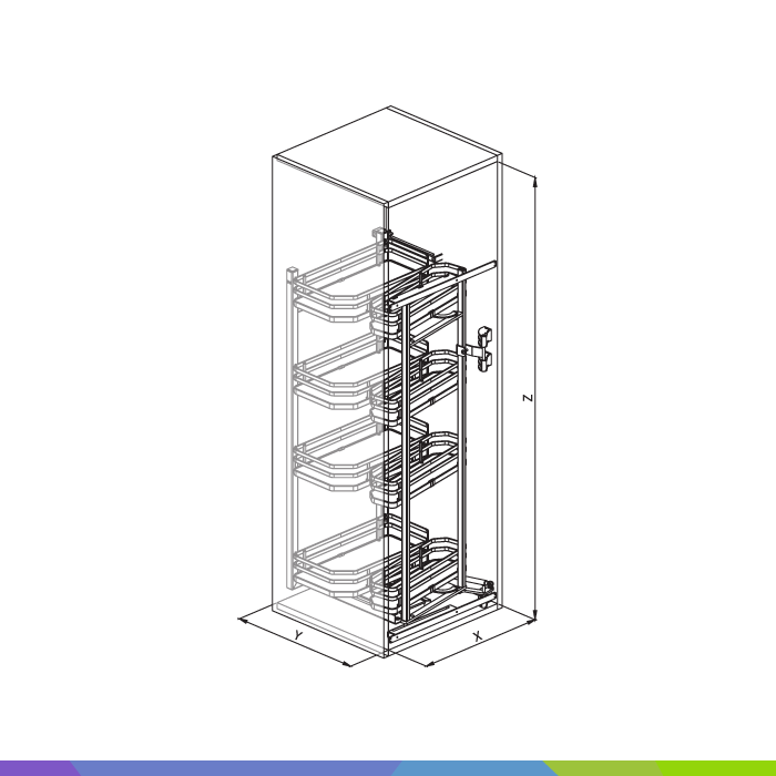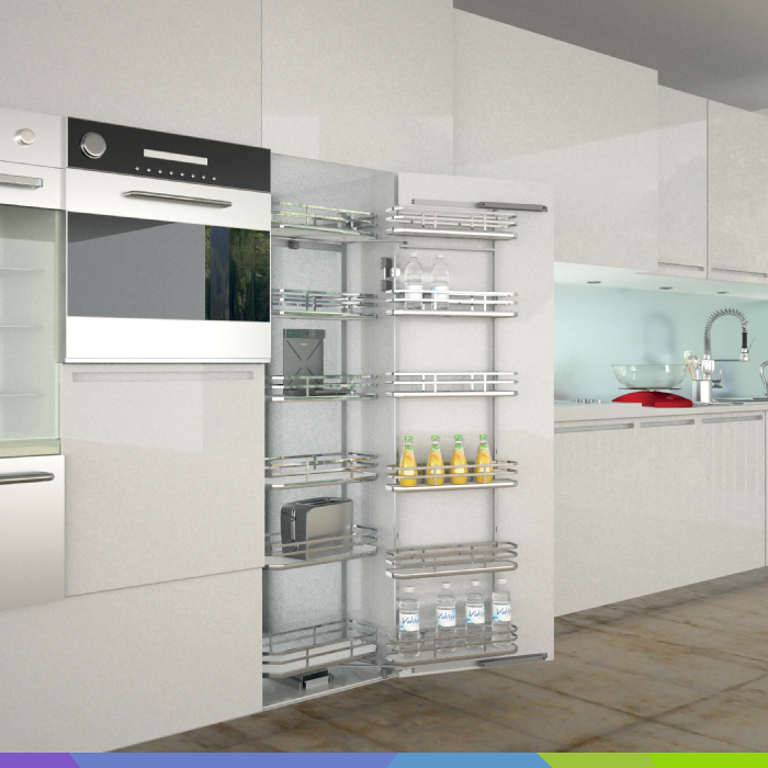• Izvlečni sistem za visoke omare z 8 košarami s polnim dnom