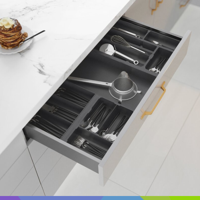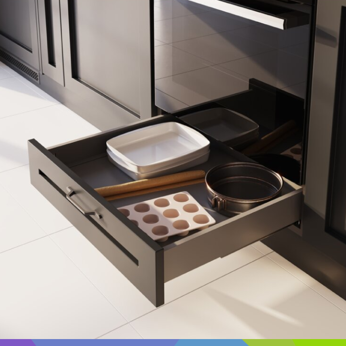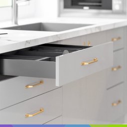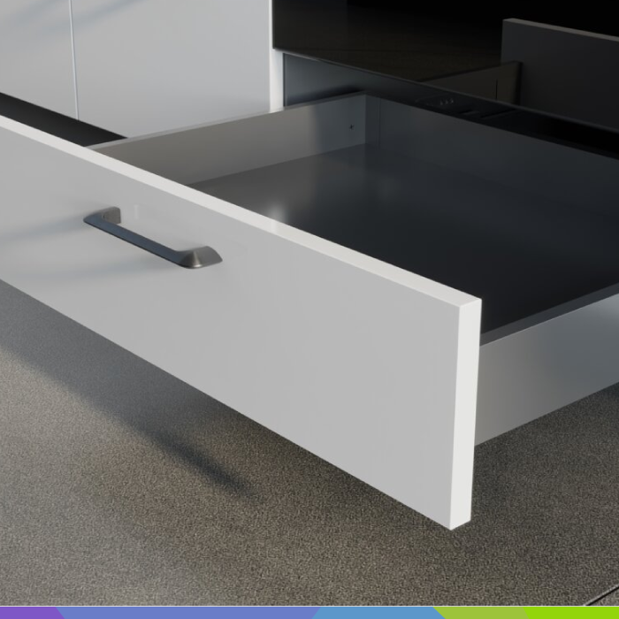 • Komplet vsebuje (2 kos. vodilo (L + D), 2 kos. predalna stranica (L + D), 2 kos. konektor za zadnjo steno (L + D), 2 kos. Sprednji konektor, 2 kos. kapa)
